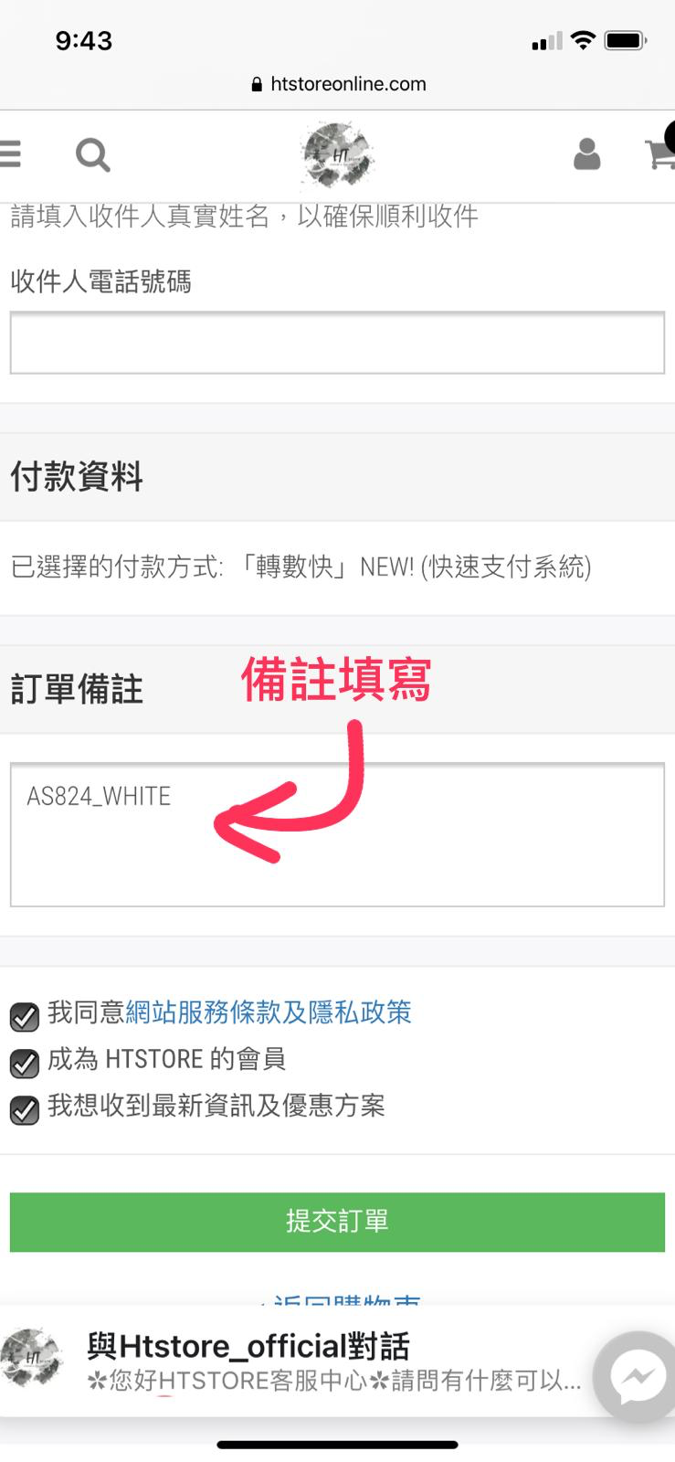 只要備註講低以下資料就可以成功下單!