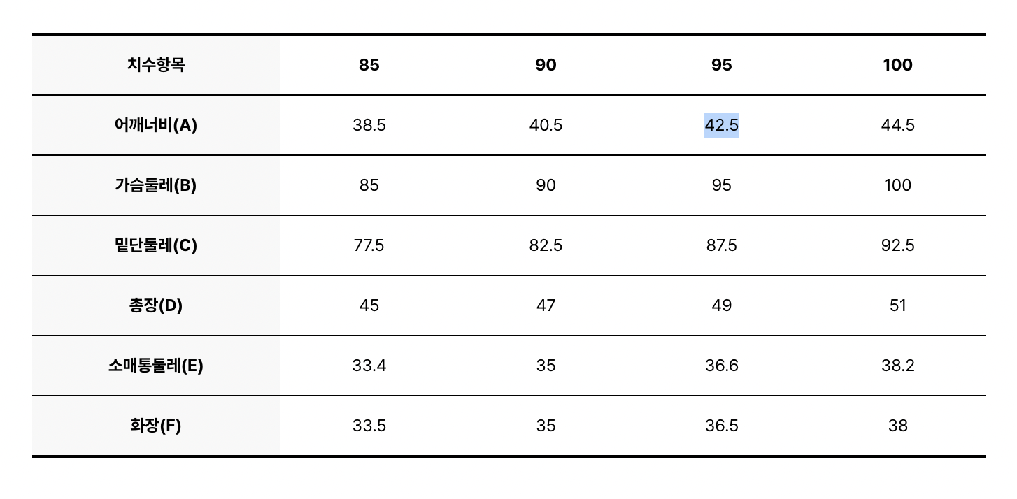 95 - 肩闊42.5 胸闊95 衣長49 袖長36.5